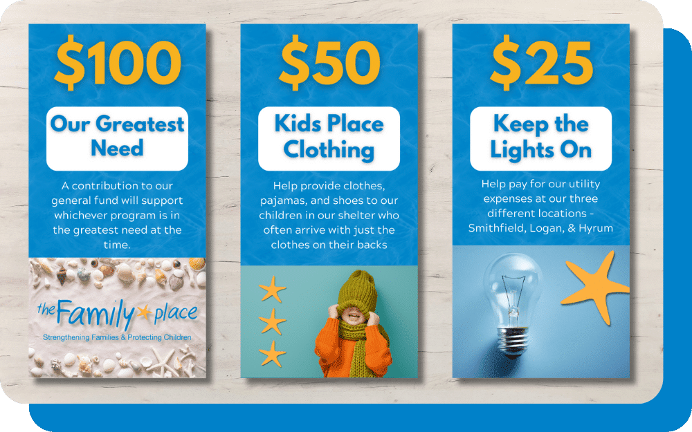 When you donate to The Family Place, your money goes towards strengthening families and protecting children in your community!